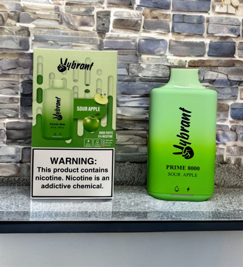 Vybrant Prime 8000 - 8000 затяжек Вкусы: Кислое яблоко Персик-холодок Виноград-холодок Арбуз-холодок Мята-лимон Мята Красное яблоко Голубая малина Клубника-банан Манго-холодок