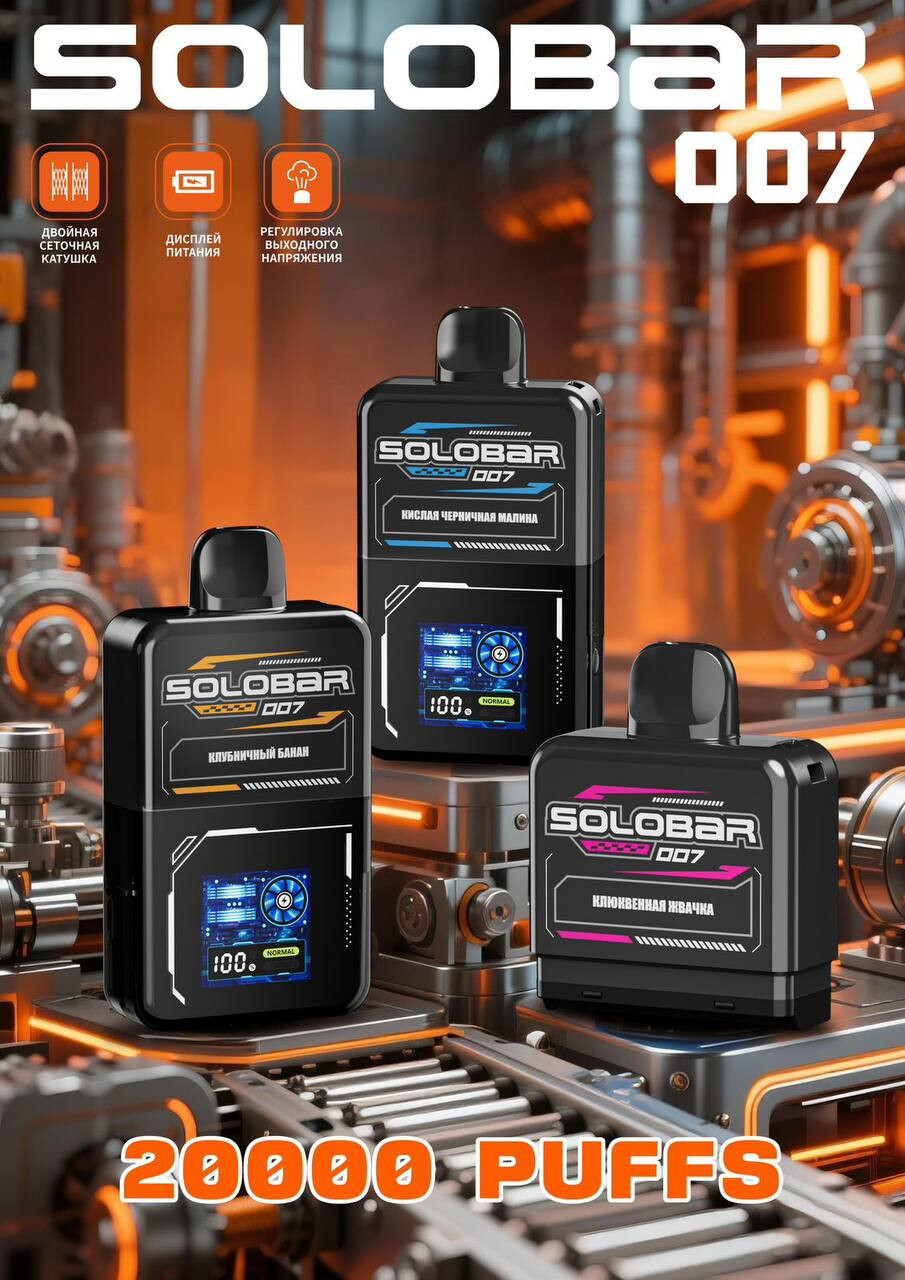 Купить Solobar 007 20000 затяжек можно прямо сейчас — оформите заказ с быстрой доставкой по всей России и оцените качество нового поколения одноразовых вейпов.