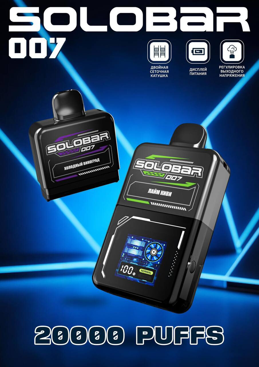 Купить картридж Solobar 007 20000 затяжек можно в нашем магазине по выгодной цене. Мы гарантируем оригинальность продукции и быструю доставку по всей России.