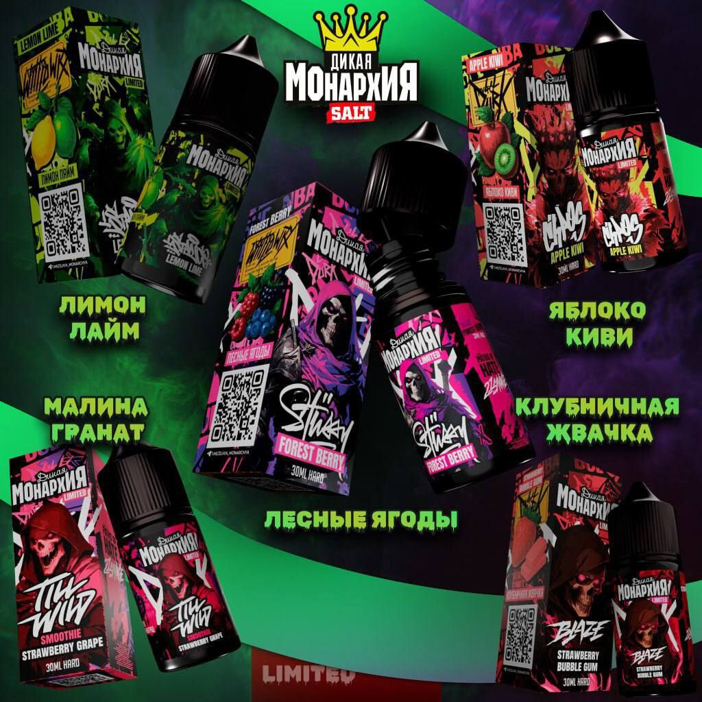 В линейке Дикая Монархия представлены разнообразные вкусы — от классических фруктовых и ягодных до необычных миксов. Жидкость совместима с большинством POD-систем и вейп-устройств, не даёт резкого удара по горлу и обеспечивает равномерное испарение.