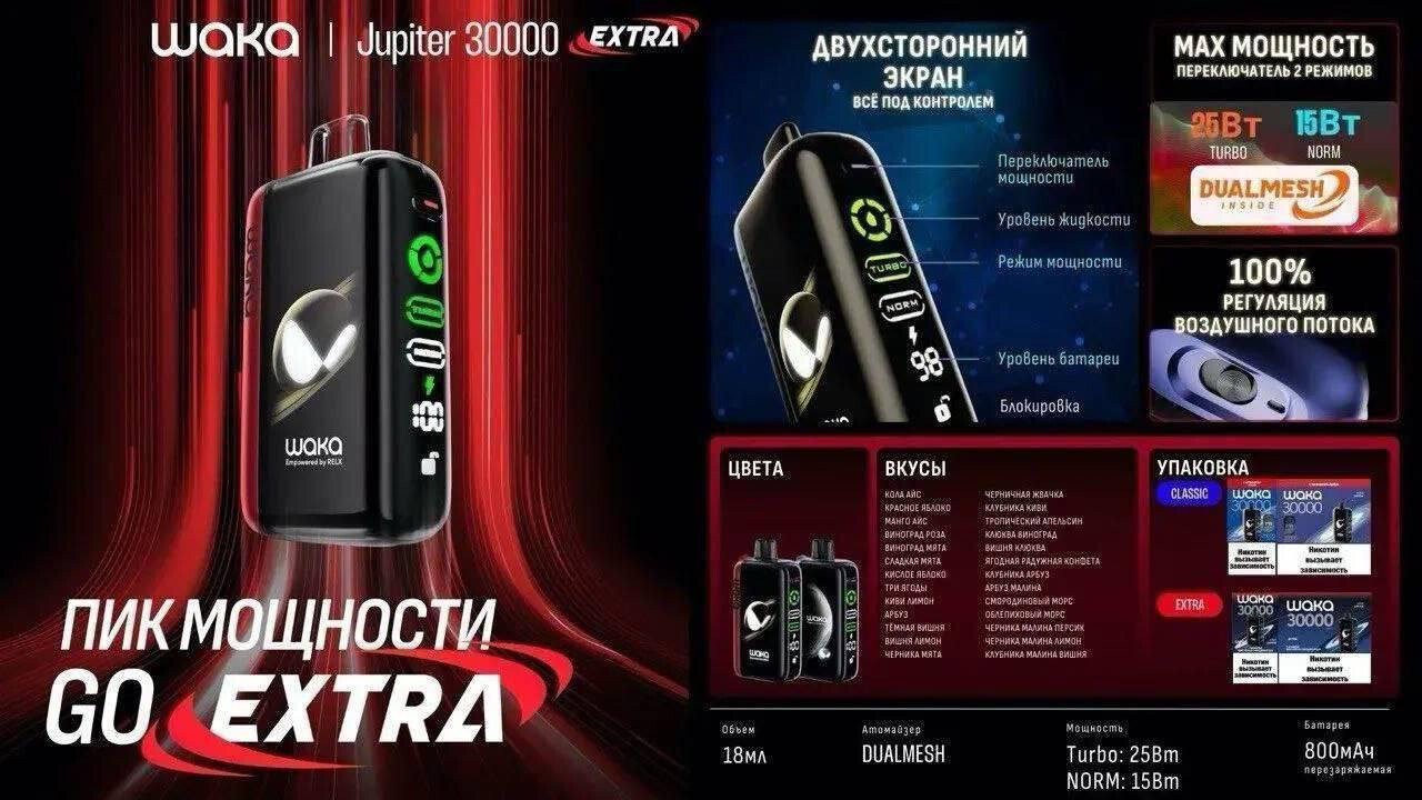 Купить WAKA Jupiter 30000 Extra в интернет-магазине nixvape.ru с доставкой. WAKA Jupiter 30000 Extra, артикул : читать описание, характеристики, фото
